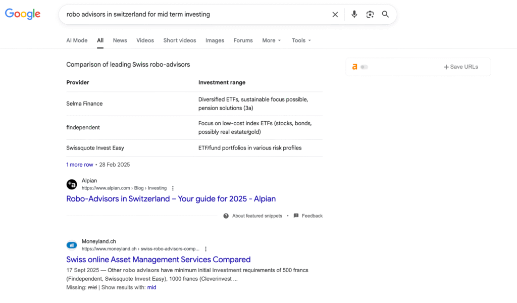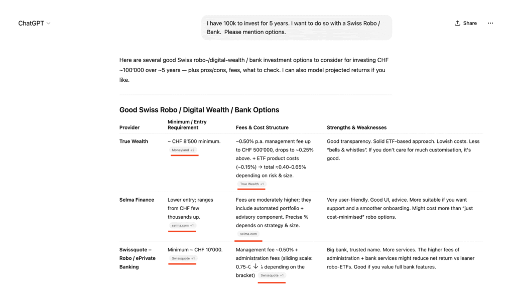 Before becoming an independent SEO & GEO consultant, I led SEO & Digital Analytics for a Swiss bank and was the Marketing Lead for a Swiss tech startup.